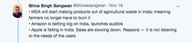 Apple’s loss of the Indian market was entirely predictable. Apple’s repetition in India of the mistakes it made in China: relying entirely on its brand recognition to build a market for its products there. Rather than attempt to understand the needs of its customers, Apple made insulting plans to market older and inferior versions of iPhones to its Indian customers — and lost their loyalty.