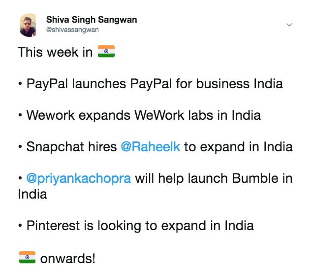 Doesn’t matter what sector they are from. The common thread here is that they all want to expand to India.